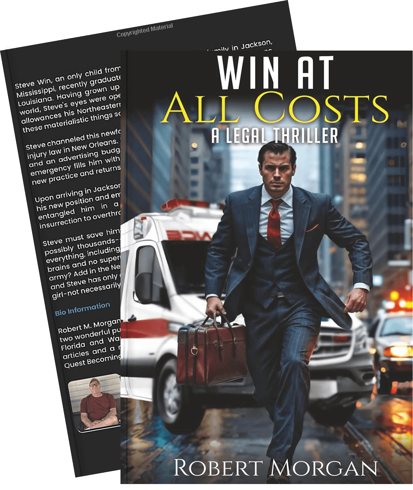 Welcome to the official site of Win At All Costs—a gripping novel by Robert M. Morgan that tears down the polished veneer of the courtroom to reveal the chaos, corruption, and complex moral dilemmas beneath. Follow Steve Win, a ruthless personal injury lawyer, as he navigates a legal landscape filled with greed, guilt, and gray areas of justice.